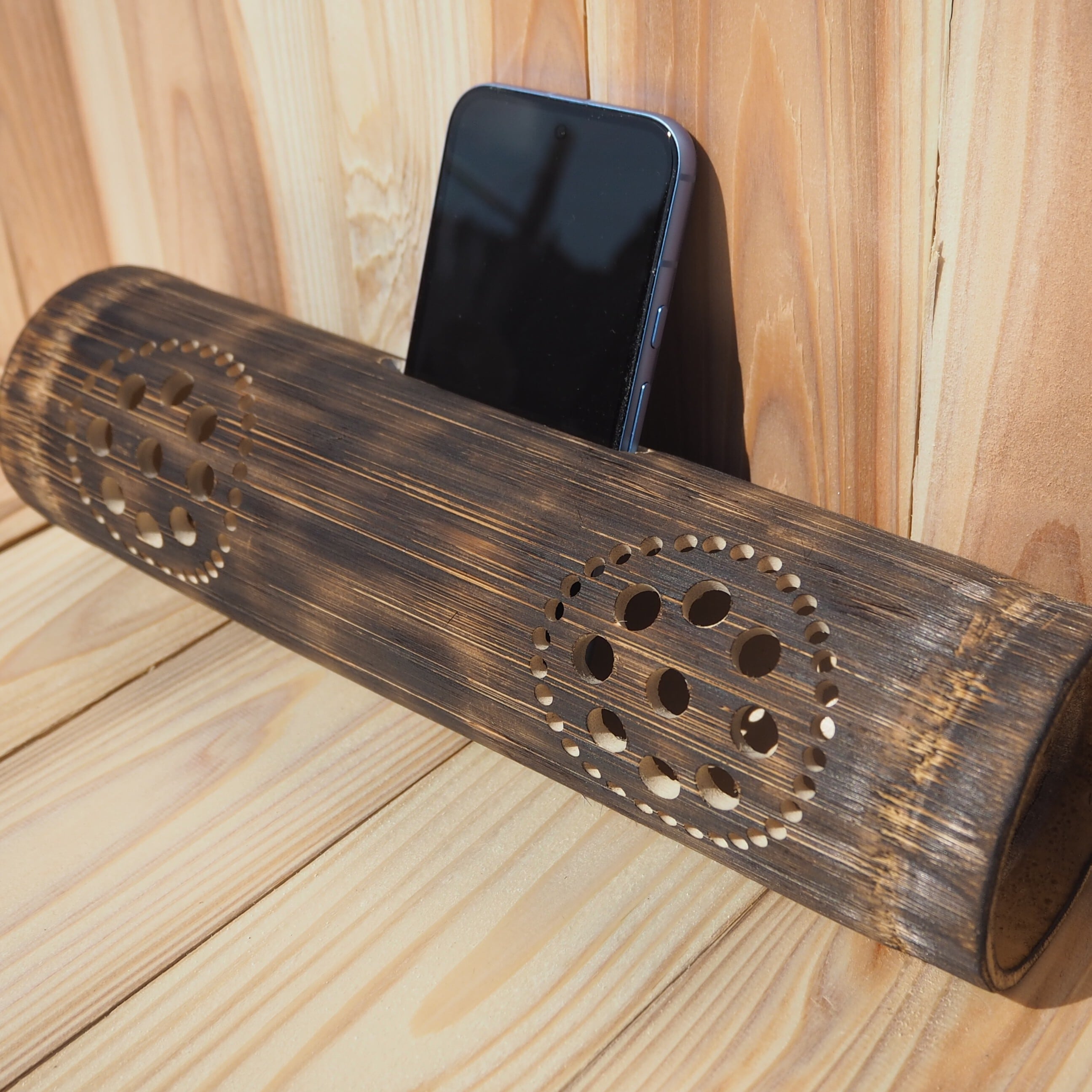 新潟で間伐した竹を使った竹のスマホスピーカーです。
